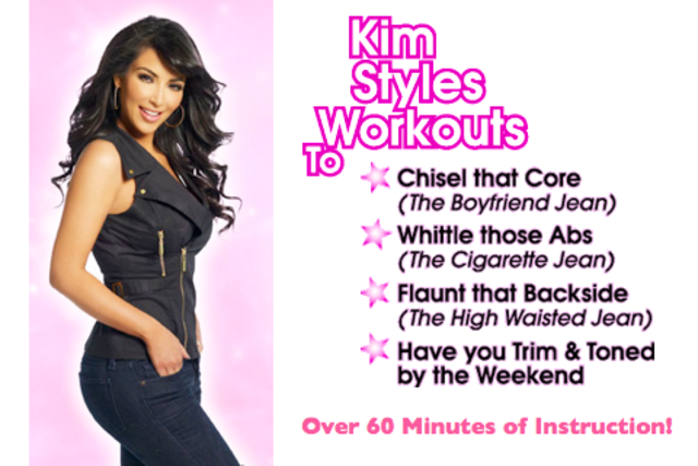 This volume focuses on sculpting the core and upper body with trainer jen galardi leading kim in two fat burning cardio workouts designed to tone and tighten the abs and arms. Fit in your jeans by friday was a 3 disc series of workouts led by kim kardashian released in 2009. There were no real instructions kim and the two exercisers just jump in and do their thing and youre supposed to follow.