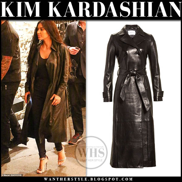 Kim Kardashian In Black Leather Coat And Silver Sandals In Los Angeles On January 24
